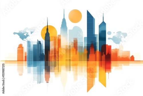 © Sanchai, Obraz premium A geometric infographic showing global population growth trends with clean lines and soft gradient backgrounds