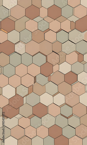 Naklejka premium A geometric pattern of interlocking hexagons in muted earth tones, creating a...