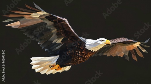 Obraz premium A geometric, polygonal illustration of an eagle in flight, against a black...