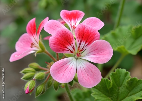 © PHOTO-GRAPHY, Fototapeta premium A geranium flower icon with five symmetrical petals and a simple center