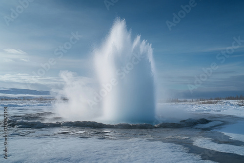 © Neiro, Fototapeta premium A geyser that only erupts once a decade, captured in a rare moment