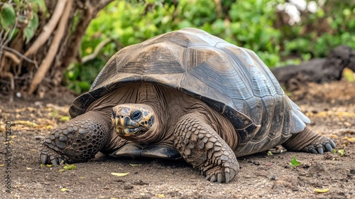 Obraz premium A giant Galapagos turtle, Galapagos islands, Ecuador, South America