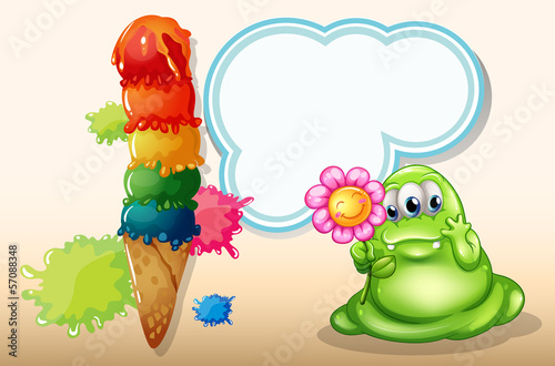 © GraphicsRF, Fototapeta premium A giant icecream near the monster with a flower