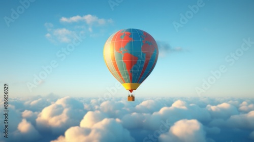 © Putt_Sanplee, Fototapeta premium A giant inflatable globe balloon floating in the sky