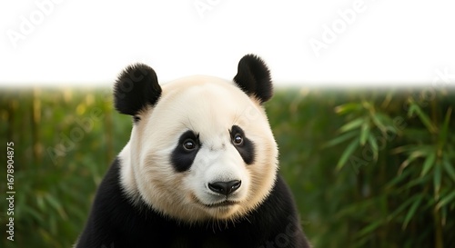 © Julia, Obraz premium A giant panda bear with black and white fur sits among bamboo plants.