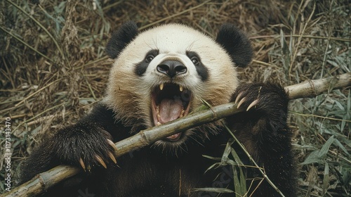 © novitasary, Fototapeta premium A Giant Panda's Delightful Bamboo Feast