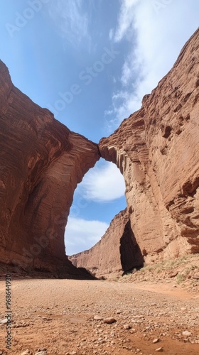 Fototapeta premium A giant stone arch towering within a canyon, shaped and worn by centuries of...