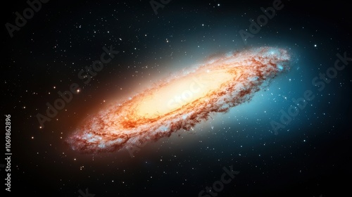 Naklejka premium A giant, swirling galaxy with vibrant colors, nebulas, and star clusters, conveying the awe inspiring beauty and infinite scale of the universe.
