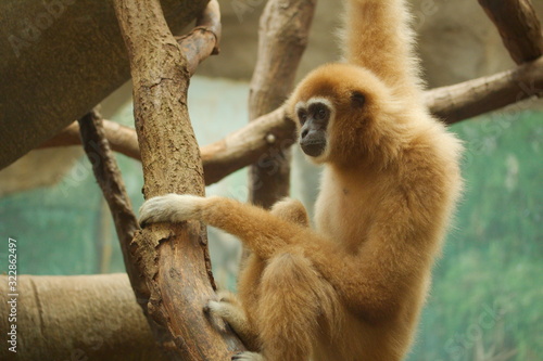 © JuriAlexander, Obraz premium A gibbon monkey sitting on a tree