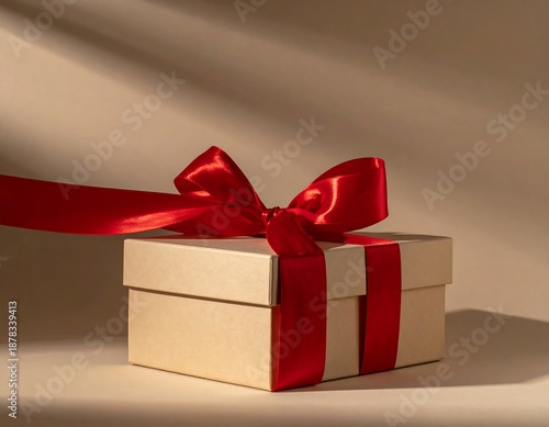 © Arflyaas, Obraz premium A gift box with a red ribbon tied in a bow on top