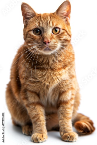 Fototapeta premium A ginger cat is sitting on a white background
