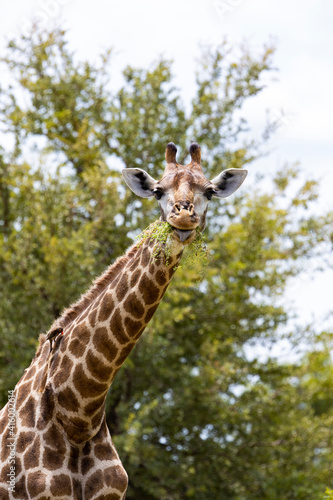 © Jurgens, Fototapeta premium a Giraffe feeding on a bush