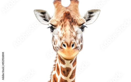 © Алла Морозова, Fototapeta premium A giraffe is staring at the camera with its mouth open.