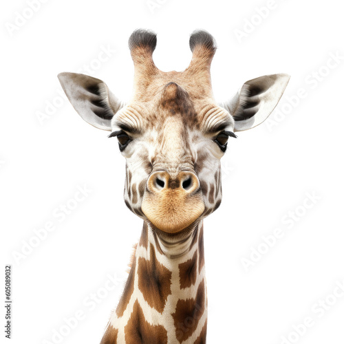 © Purple Penguin GFX, Fototapeta premium a Giraffe portrait with one or two Giraffe's front view, wildlife-themed, photorealistic illustrations on a transparent background cutout in PNG. generative ai