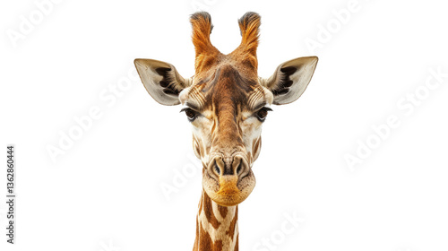 © yeewa, Naklejka premium A Giraffe's Gaze: A captivating portrait of a giraffe, its distinctive patterned coat and gentle eyes draw the viewer in, creating a sense of connection with this magnificent creature.