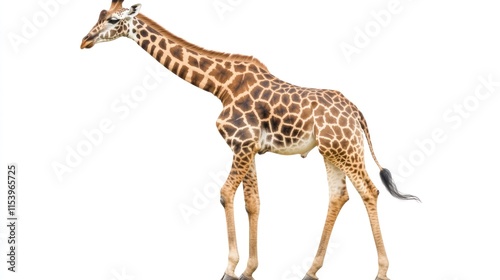 Naklejka premium A giraffe stands against a white background.