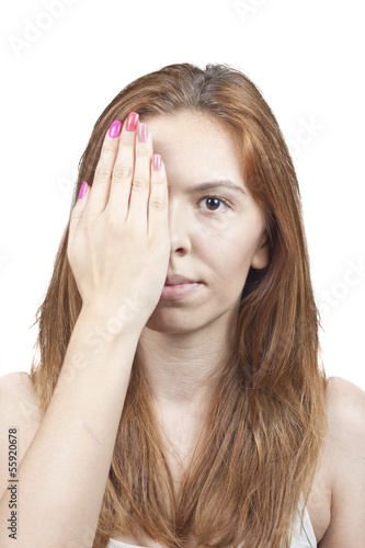Fototapeta premium A girl covers her face with his hand