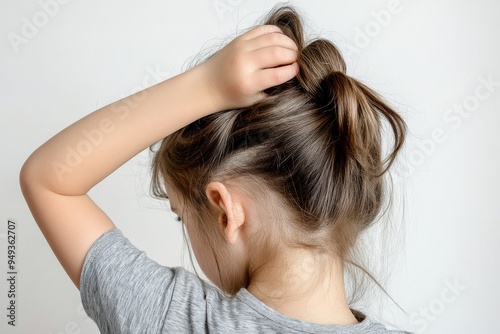 Fototapeta premium A girl is scratching his itchy head , Childhood lice, Unclean hair and scalp , Generative AI