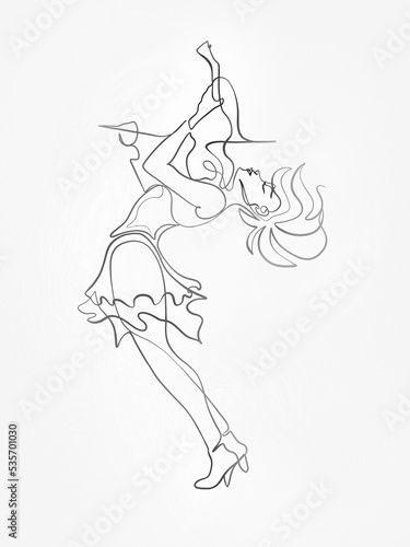 Fototapeta premium A girl playing violin and dancing at the same time is drawn in one line art...