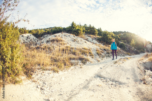 Obraz premium A girl with a backpack.