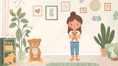 Naklejka premium A Girl with her Teddy Bear in a Playroom