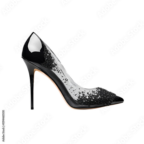© ณภัทร วงค์มาวิวัฒน์, Obraz premium A glamorous black stiletto heel with a sleek design and sparkling embellishments, perfect for evening events, parties, or special occasions. A stylish statement for any wardrobe.