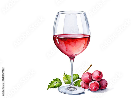 © Fotograf, Obraz premium A glass of red wine with a few grapes on the table
