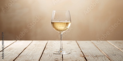 © The 2R Artificiality, Fototapeta premium A glass of white wine on a vintage wooden table, ideal for wine tasting sessions