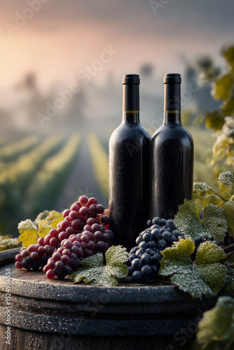 © Eduardo Lopez, Fototapeta premium A glass of wine in a Bordeaux vineyard in a rustic and peaceful setting.