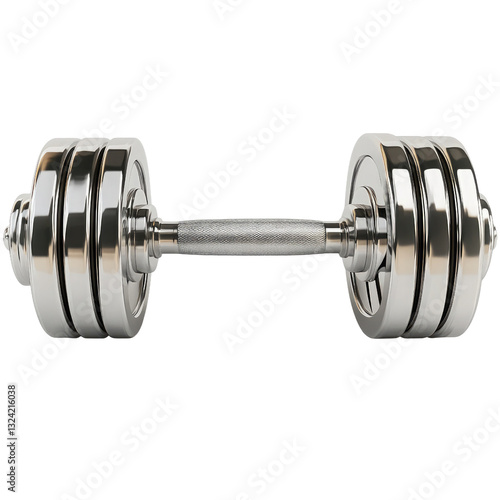 © Rowshen, Naklejka premium A Gleaming Chrome Dumbbell, Symbol Of Strength And Fitness, Ready For A Challenging Workout Session Against A Clean Isolated on Transparent Background
