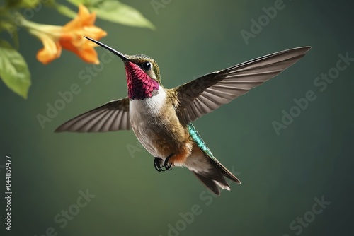© Andrey, Fototapeta premium A Glimpse of Nature's Brilliance: The Ruby-Throated Hummingbird.