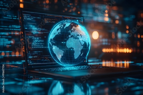 © D3ll.Maccaroni, Obraz premium A global virtual event on a laptop or tablet screen