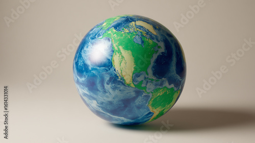 © 202studio, Fototapeta premium A globe balloon with soft bulging continents, ocean-blue and land-green latex