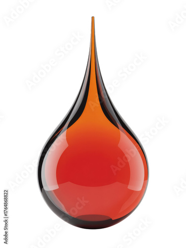 Obraz premium A glossy, abstract teardrop shape with a vibrant red to orange gradient and...