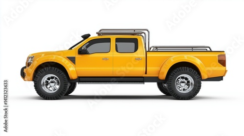 © sukarman, Fototapeta premium A glossy bright yellow pickup truck