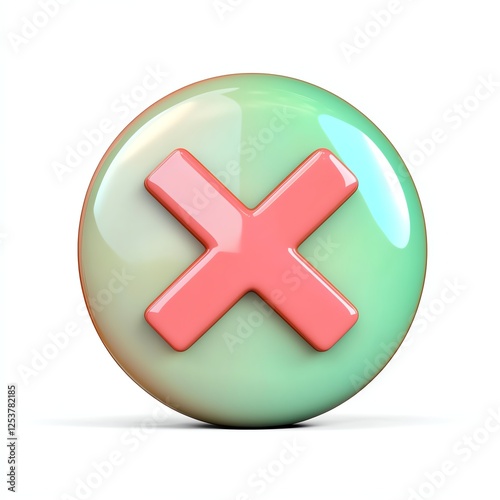 © Hoolity, Fototapeta premium A glossy button featuring a red cross symbol on a soft green background, often signifying an action to cancel or close.