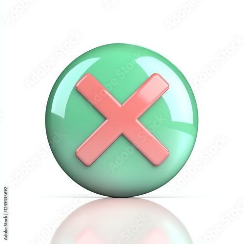 © Hoolity, Obraz premium A glossy green button with a pink cross symbol, indicating a negative or cancel action, often used in digital interfaces.