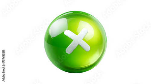 © Shimul, Fototapeta premium A glossy green sphere icon with a white X symbol used to close or cancel an action