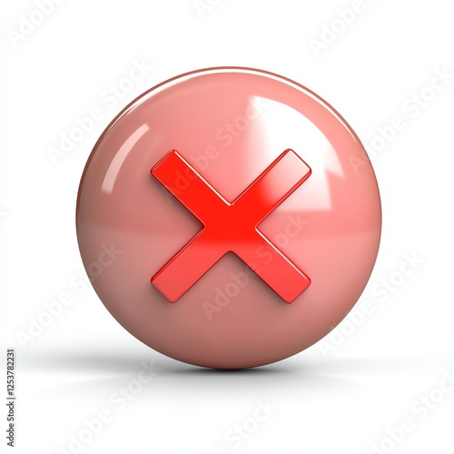 © Hoolity, Obraz premium A glossy pink sphere featuring a prominent red cross symbol, indicating a negative response or rejection.