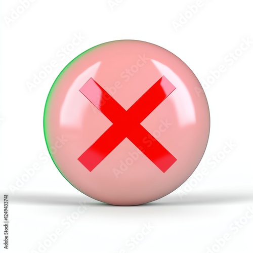 © Hoolity, Fototapeta premium A glossy, pink sphere with a red "X" symbol, representing a negative or incorrect response, set against a simple background.