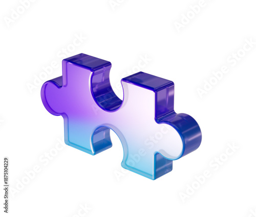 © Hammad, Fototapeta premium A glossy purple and blue gradient puzzle piece with a sleek, futuristic design. 3d illustration