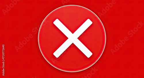 © Umri, Fototapeta premium A glossy red circular icon featuring a bold white X, representing error, cancellation, or a negative choice.
