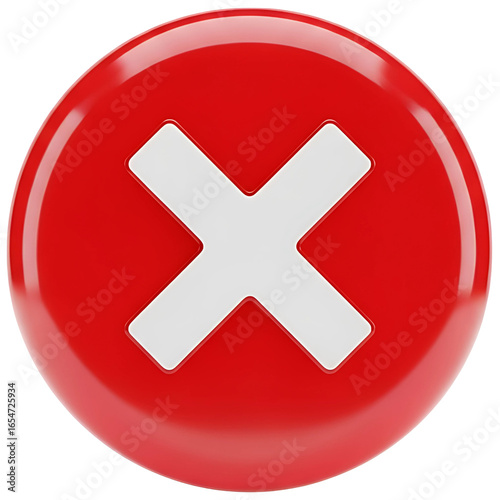 © Forida, Fototapeta premium A glossy red cross button or web icon symbolizes a negative action like close, cancel, or stop