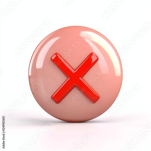 Fototapeta premium A glossy, round button featuring a red cross symbol on a light pink background, indicating a negative or cancellation action.