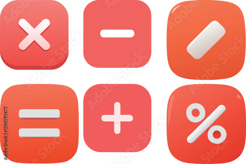 Fototapeta premium A glossy set of mathematical operator buttons featuring symbols for...