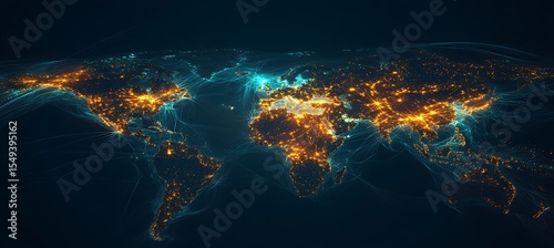 Fototapeta premium A glowing AI matrix analyzing global data patterns