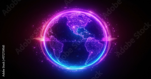 © hakule, Obraz premium A glowing blue and purple planet with a bright light surrounding it