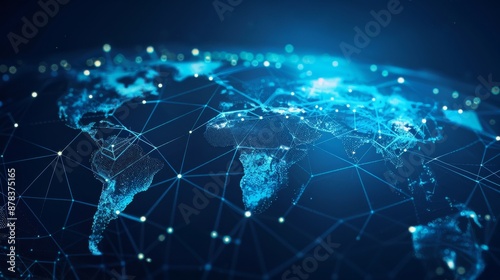 Fototapeta premium A glowing blue digital map of the world, representing global connection and...