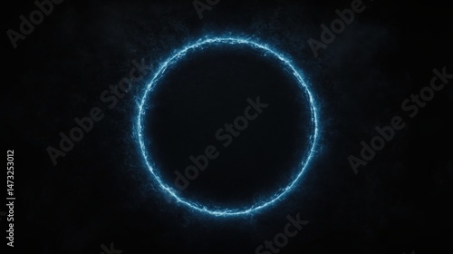 Fototapeta premium A glowing blue energy ring forms a perfect circle against a dark background,...