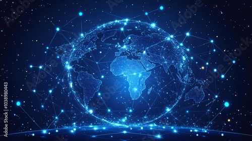 © Alicia, Obraz premium A glowing blue globe connected by lines, representing global network and technology.